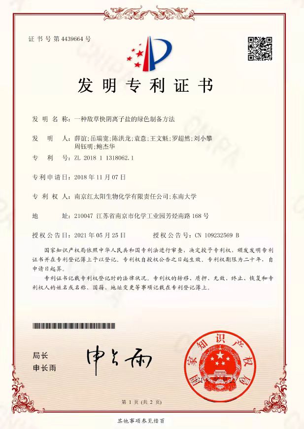 南京紅太陽生物化學(xué)有限責(zé)任公司技術(shù)中心于2005年成立,并于2019年被認(rèn)定為“江蘇省工業(yè)企業(yè)技術(shù)中心”,2021年被認(rèn)定為“江蘇省吡啶產(chǎn)業(yè)鏈催化新材料工程技術(shù)研究中心”。